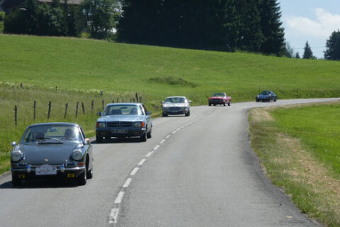 En route dans les belles vallées du Jura, notre convois se dirige vers le restaurant choisis pour notre déjeuner dominical.